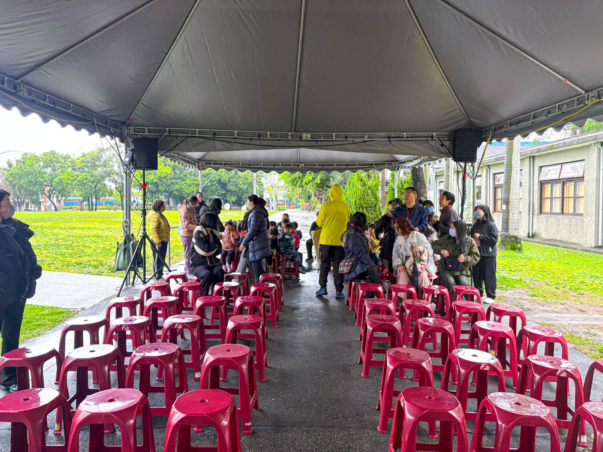 Stage Area: A simple yet sturdy stage measuring 600cm (W) × 360cm (D) × 30cm (H) was built, covered with a red carpet to enhance the overall atmosphere. This served as the main area for guest speeches and the opening performance by Xinyue Kindergarten.
